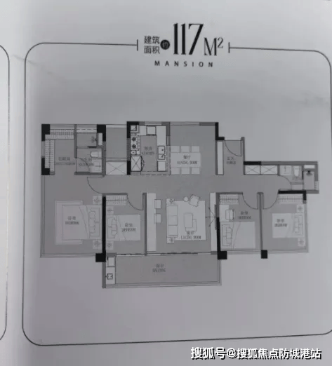 建面约117㎡ 洋房四房:12-13层板楼,专梯专户(2梯2户),17.5米南向巨幅面宽,五开间朝南,左右户不共墙,私密性极佳。