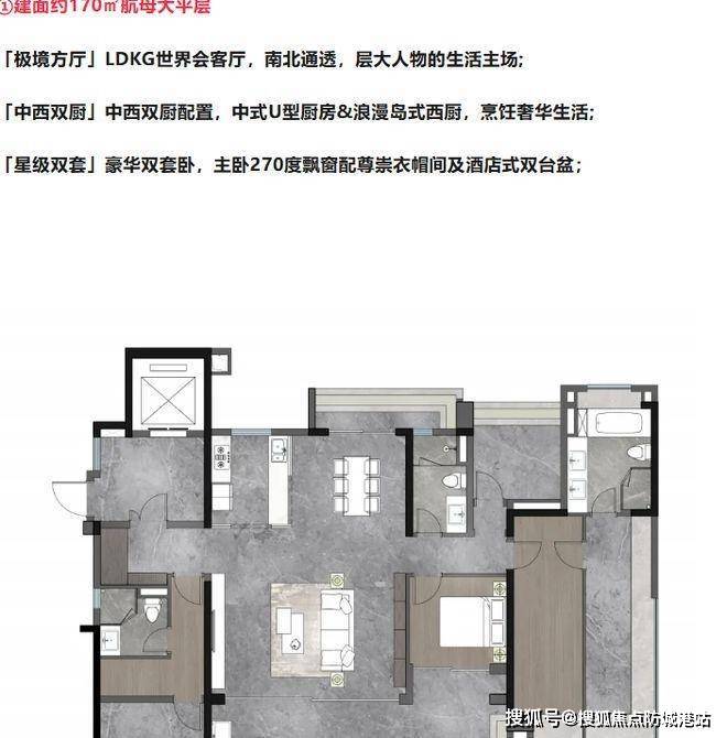 产品为 107 - 170㎡全景舱板奢大平层,新规户型使用率高达 115%,且为纯改善四房,全板式楼盘,确保 100%南北对流和 100% 四开间朝南。项目在规划设计上摒弃单纯追求收益的常规做法,而是专注于品质打造,最终呈现出纯南向板楼社区。约 55 米楼间距超越 50 米的标准,最大化每栋楼的视线和面宽,保障业主隐私,提供最佳视野景观。建面约 170㎡户型打造 “极境方厅”,LDKG 世界会客厅尽显层大人物生活主场;建面约 143㎡户型的 “奢阔通厅” 约 44㎡,同频层峯生活;建面约 107㎡户型以 “极致面宽” 四开间朝南,纵享豪宅尺度。