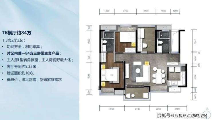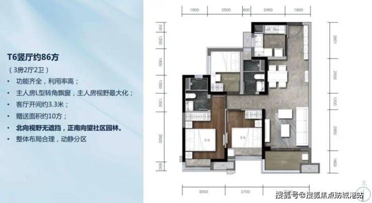平洲三山唯一84方横厅三房带主套,正南向设计,户型使用率高达89%。