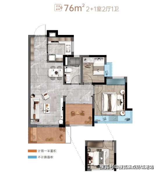 75㎡ 两室两厅一卫:适合小家庭或首次置业者,布局紧凑实用。