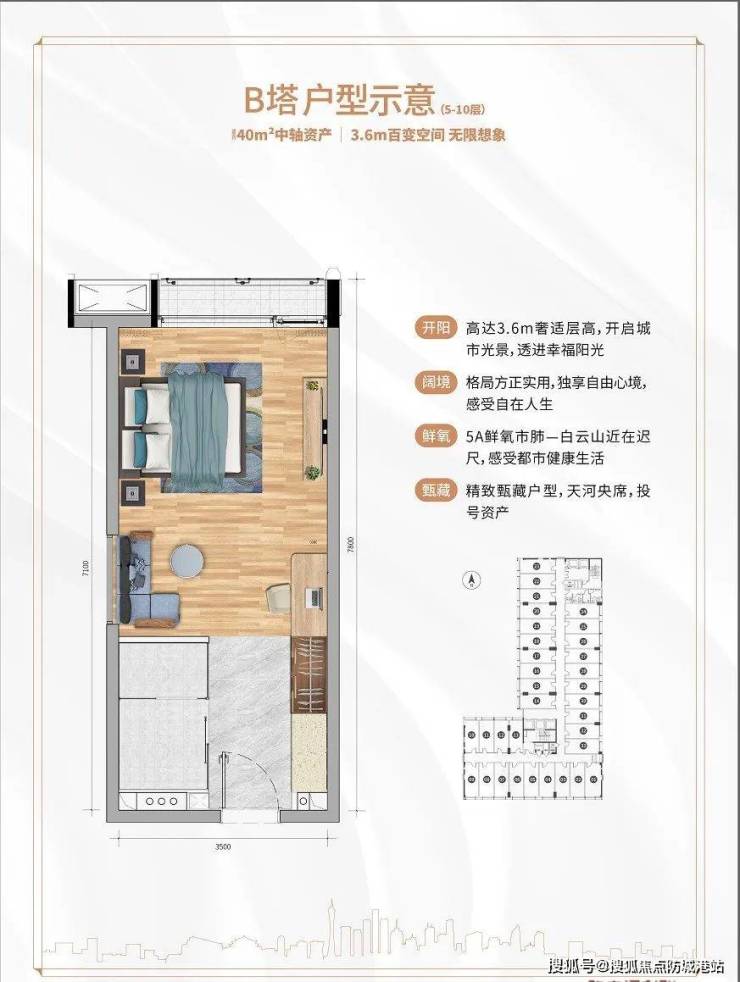 观云大厦:推售建筑面积约37-41㎡中轴精品空间,3.4-3.6米层高,重新解构空间的秘密,满足自用、办公、投资多重需求。
