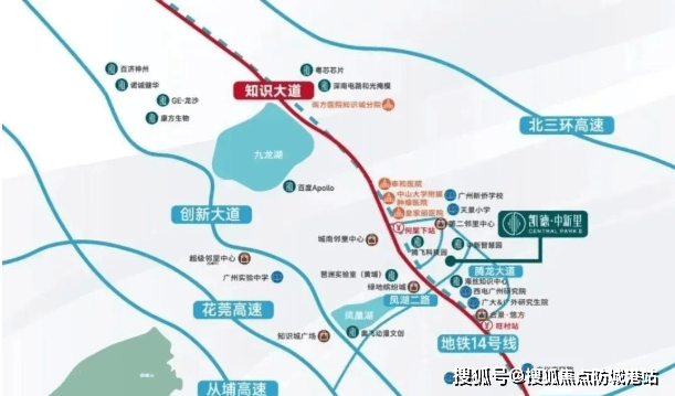 项目坐落于中新知识城发展最为成熟的九龙大道旁,紧邻城市主干道——知识大道,双轴交汇,出行极为便利。步行约600米即可抵达地铁14号线何棠下站,搭乘地铁4站即达镇龙枢纽,无缝换乘21号线快线,1站直达科学城核心区,4站直抵天河智慧城,通勤效率极高。自驾方面,15分钟车程可达科学城,40分钟内轻松抵达天河CBD,畅享城市发展红利。