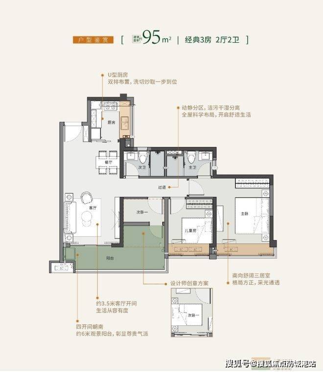 95㎡户型:该户型布局精巧,空间利用合理,十分适合刚需小家庭。整体动静分区,客厅与餐厅相连,形成开阔的公共活动区域,方便家人互动交流。客厅外接景观阳台,不仅增加采光通风,还可俯瞰小区园林景色,为生活增添一份惬意。主卧空间宽敞,可放置衣柜及舒适的大床,满足基本收纳与休息需求。次卧和书房的设计灵活,可根据家庭需求,将书房改造成儿童房或客房,满足不同阶段家庭结构变化。厨房采用 L 型设计,操作台面充足,洗、切、煮动线流畅,让烹饪变得轻松愉悦。卫生间干湿分离,提高使用效率,保持空间干爽。