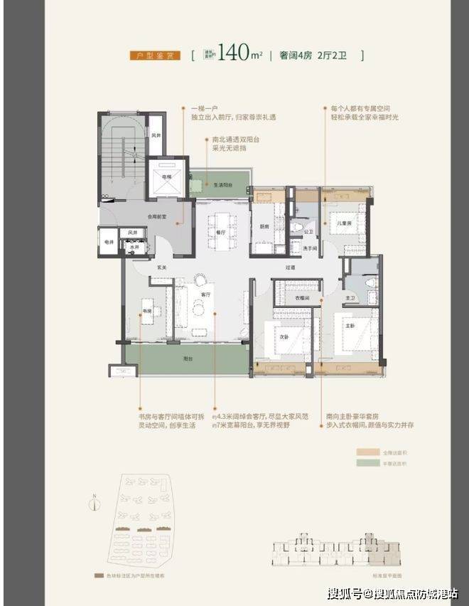 140㎡专梯专户户型(12 座):这一户型专为追求高品质与高私密性的家庭打造。专梯专户设计,保证了业主生活的专属感与私密性。四房两厅两卫的格局,空间开阔,功能齐全。客厅与餐厅一体化设计,营造出宽敞大气的公共活动区域,无论是家庭聚会还是宴请宾客,都能轻松应对。四个卧室布局合理,动静分区,互不干扰。主卧空间豪华,独立卫生间、衣帽间一应俱全,给予主人尊贵的居住体验。次卧和其他房间尺度宽敞,可根据家庭成员特点进行个性化规划,如打造老人房、儿童房、书房或健身房等,满足家庭全生命周期不同阶段的需求。同时,该户型可能还配备了更大的阳台或露台,提供更多的休闲空间,可用于种植花草、摆放休闲桌椅,享受惬意的户外时光。