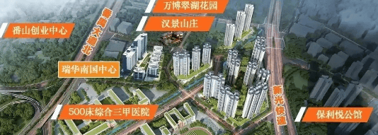 轨道交通潜力:临近 3 号线(长隆站)及延长段里仁洞站、7 号线(万博站)、广佛莞城轨(东环站),并可串联接驳 2、7、18、20、22 号线,有助于构筑一小时粤港澳都市圈,随着轨道交通的逐步完善,公共交通出行也将更加便捷。