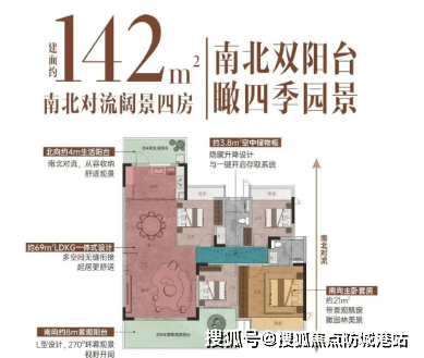 142㎡四房两厅两卫,改善标杆户型。LDKG会客厅面积达69㎡,南北通透设计,空气流通性极佳。约8米超宽观景阳台搭配270度宽屏视野,推窗即见社区央景;4米生活阳台满足储物与家政需求,空间实用性拉满。
