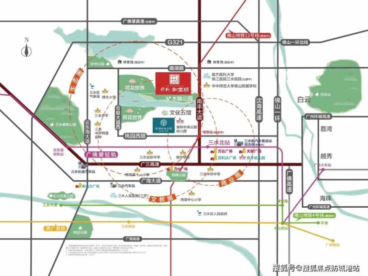 • 城轨:5分钟到三水北站,20分钟到佛山西站,30分钟到广州