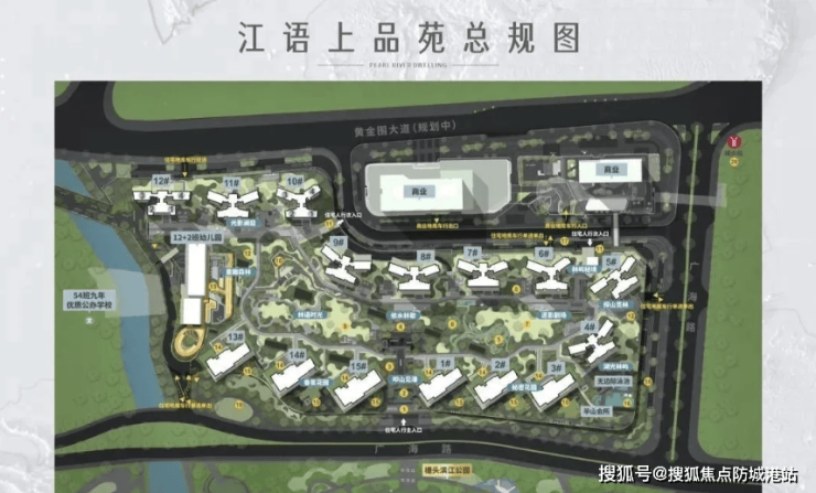 江语上品苑坐落于白云区罗冲围湾区新岸核心区,具体位置在广海路180号,项目总占地面积约12万平方米,总建筑面积约45万平方米,容积率仅2.71,绿化率达30%,是主城核心区稀缺的低密滨江住区。项目规划建设15栋高层住宅、1栋12班公立幼儿园、1栋2班托儿所、1栋54班九年一贯制学校及4.5万平方米社区商业配套,打造集居住、教育、商业、休闲于一体的全能生活大城。