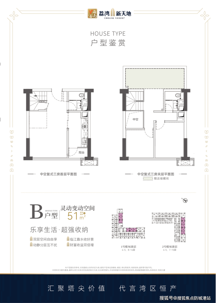 荔湾新天地的产品定位以双钥匙LOFT公寓为主,户型面积从36㎡到93㎡不等,设计上具有较高的灵活性和适应性。LOFT公寓的挑高设计最大限度地提升了空间利用率,提供了高达4.5米的复式挑高空间,买一层用两层,且部分户型可明火,带阳台和全明房,满足不同业主的需求。
