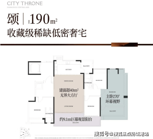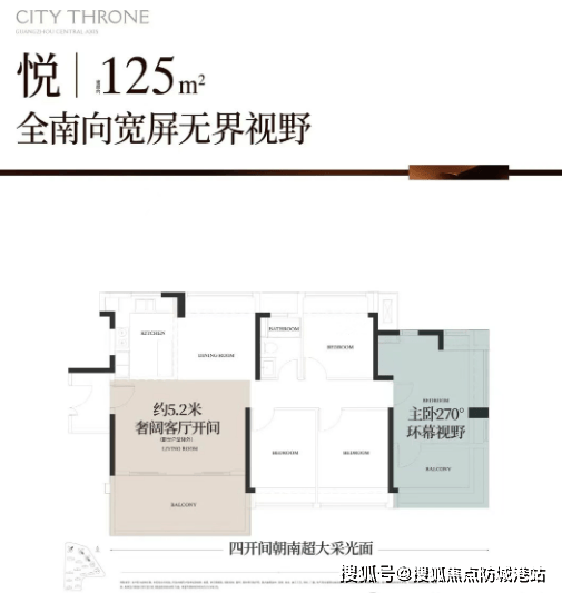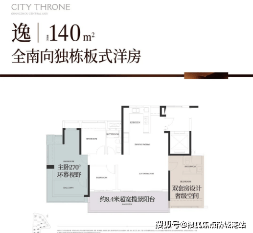 当前在售主力户型集中在120至240平方米区间。以建面约140平方米的四房为例,采用四开间朝南布局,配备约8.4米南向阳台和270°飘窗,LDKG一体化客餐厅面积达34平方米,适合多代同住或高频社交的家庭。而楼王T5栋推出的约240平方米大平层,则实现专梯专户,标配9平方米入户电梯厅,三面观景视野直面中央园林与远山。值得注意的是,项目实用率普遍在100%至110%之间,这在广州新房市场中并不多见,意味着实际得房空间比纸面数据更可观。