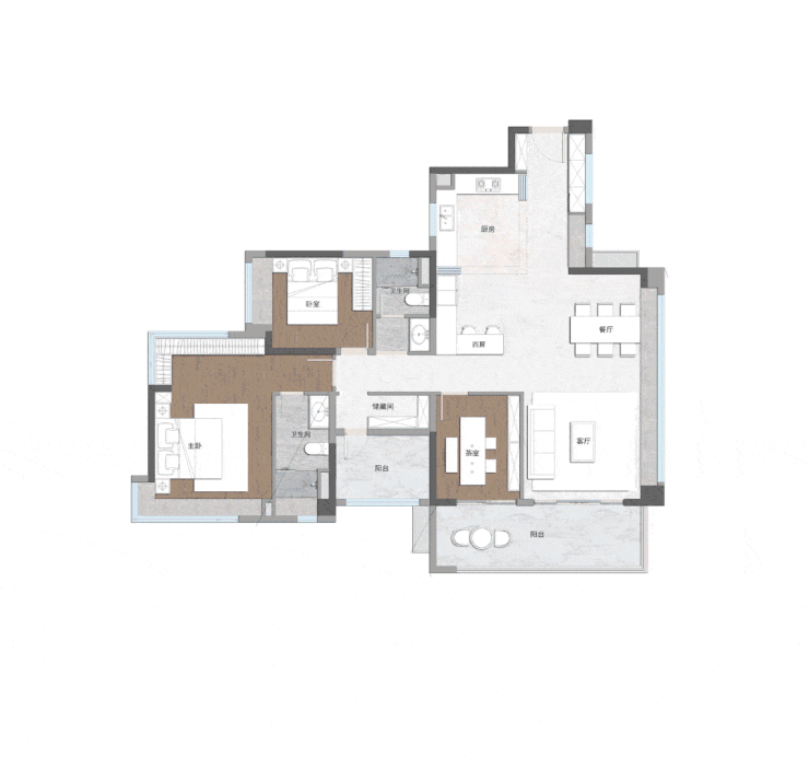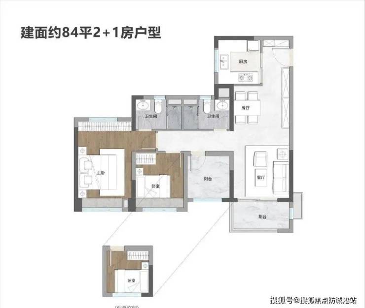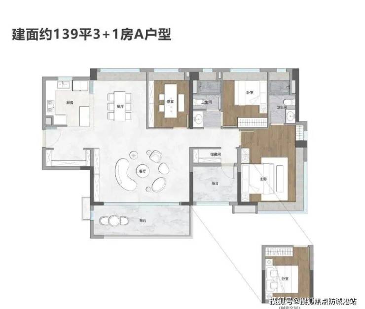 户型设计上,保利·领秀海还藏了不少巧思。有建面约74、84、95、120、126、139平三至四房设计,非常丰富。