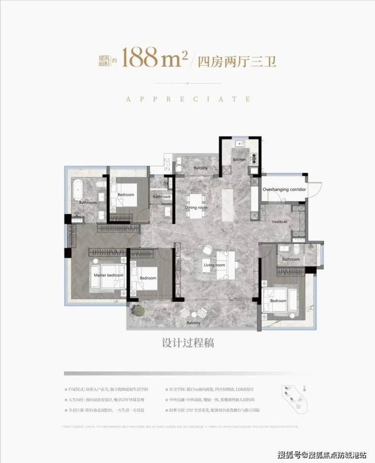 项目提供多样化的户型设计,建面约103㎡至188㎡不等,设计合理,南北通透,得房率高。每个户型均设计了开阔的采光面,确保居住舒适性,同时注重景观设计,使业主能够享受到优美的社区景观。