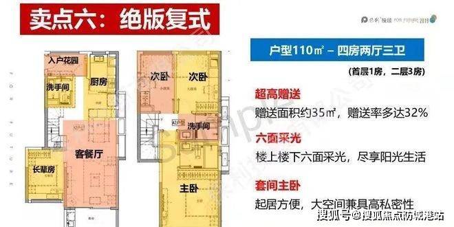 舒适宽敞:复式结构让空间更加开阔,客厅挑高设计,增加了空间的通透感和大气感。加上较高的使用率和额外赠送的 36 方面积,让整个居住空间更加舒适宽敞。