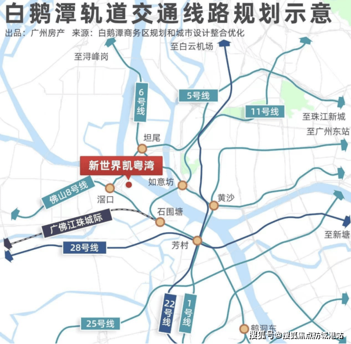 项目紧邻地铁5号线滘口站,步行距离仅约700米,通过私家天桥直连地铁站,让业主在日常通勤中无需担心风雨侵袭。此外,项目周边还有6号线和11号线环绕,形成了便捷的轨道交通网络,直达珠江新城等城市重要节点。