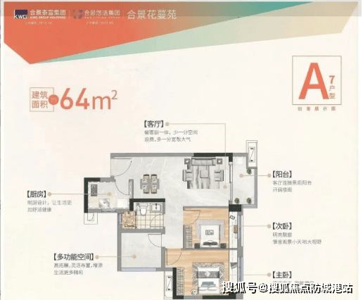 64㎡两房一卫:方正实用,动静分区,适合单身或小家庭;