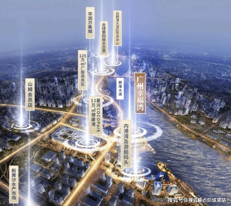 广州幸福湾周边有多条地铁线路(10号线、11号线、22号线)交汇,距离最近的10号线东沙站仅约600米,预计于2024年底开通。此外,通过芳村大道南、东沙大道等快速路可迅速连接环城高速及东新高速,实现全城通达。水上交通方面,未来还将建设广州国际内港湾码头和水上巴士系统,进一步增强出行便利性。
