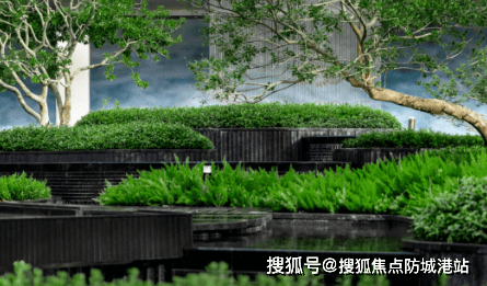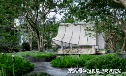 走进园林区,第一眼就被那座悬浮茶室吸引住了。帆船造型漂在镜面水池上,檐角挑得很高,底下用的是巴西进口的雪山银狐奢石。水系从入口叠瀑一路流到中央水池,再沿步道溪流延伸至各楼栋,营造出“听水—观水—亲水”的动线。绿植搭配也很讲究,乌桕、铁冬青和修剪整齐的绿篱交错,层次感强,不像有些小区只铺草坪就完事。值得一提的是,现场展示的园林、大堂、车库都是交付标准,所见即所得。