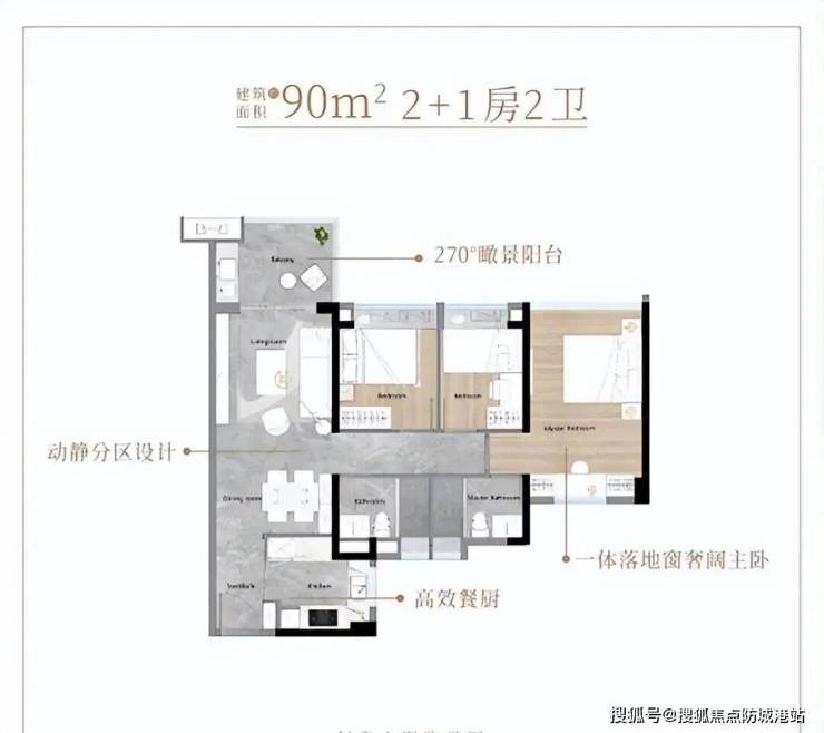 南北通透双阳台设计,瞰景阳台约6.9米