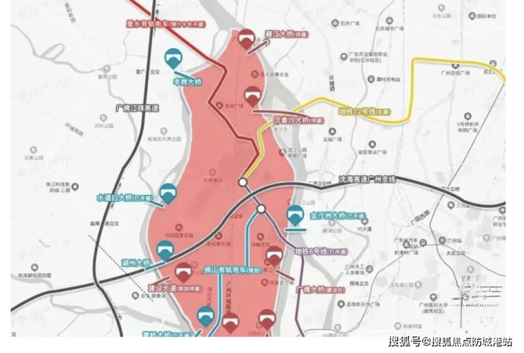 跨江大桥现状:金沙洲大桥正在改造升级;广佛大桥预计 2026 年内通车,配备非机动车专用通道,快速接驳荔湾大坦沙;规划沉香大桥目前处于环评与鹭鸟生态监测阶段,暂未动工,距离正式通车仍有较长周期。