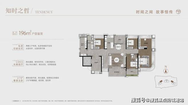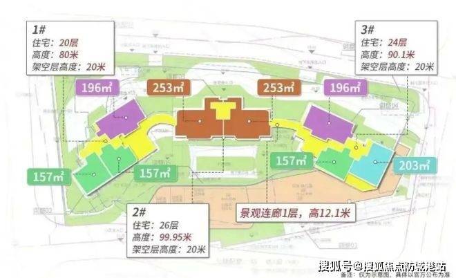 户型设计高端独特。共 3 栋楼,1 栋 20 层高,两梯三户专梯专户,有 157 - 196 平户型;2 栋为楼王,26 层高,两梯两户,均为 253 平大平层,层高 3.3 米;3 栋 24 层高,两梯三户,有 157 - 203 平产品。由全球三大豪宅名师联袂设计,所有户型双阳台配置,大开间大面宽,采光面最大化,转角设计成 270° 飘窗,景观视野绝佳。如 157 平户型动静分区,主卧 270 度弧形飘窗;196 平双主套,开间尺度大;253 平竖厅设计,南北对流,主卧飘窗和主卫 270 度弧形采光面,满足高端居住需求。