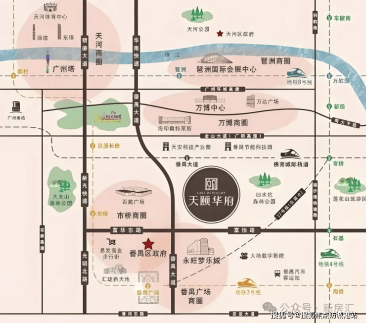 向北连接万博中心,距离广州南站仅15分钟车程,去往珠江新城CBD也只需20分钟,既满足业主的生活便利需求,也具备快速进入核心商圈的交通优势。