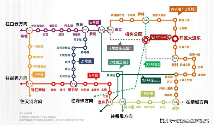 路网交通方面,项目紧邻开源大道等城市主干道,自驾出行可快速接驳广州绕城高速、广园快速路等交通干线,便捷通达白云、番禺、天河等区域。同时,规划中的地铁 6 号线东延段与 23 号线将在周边植树公园站交汇,未来双地铁加持,交通格局将进一步升级,出行便利性持续提升。