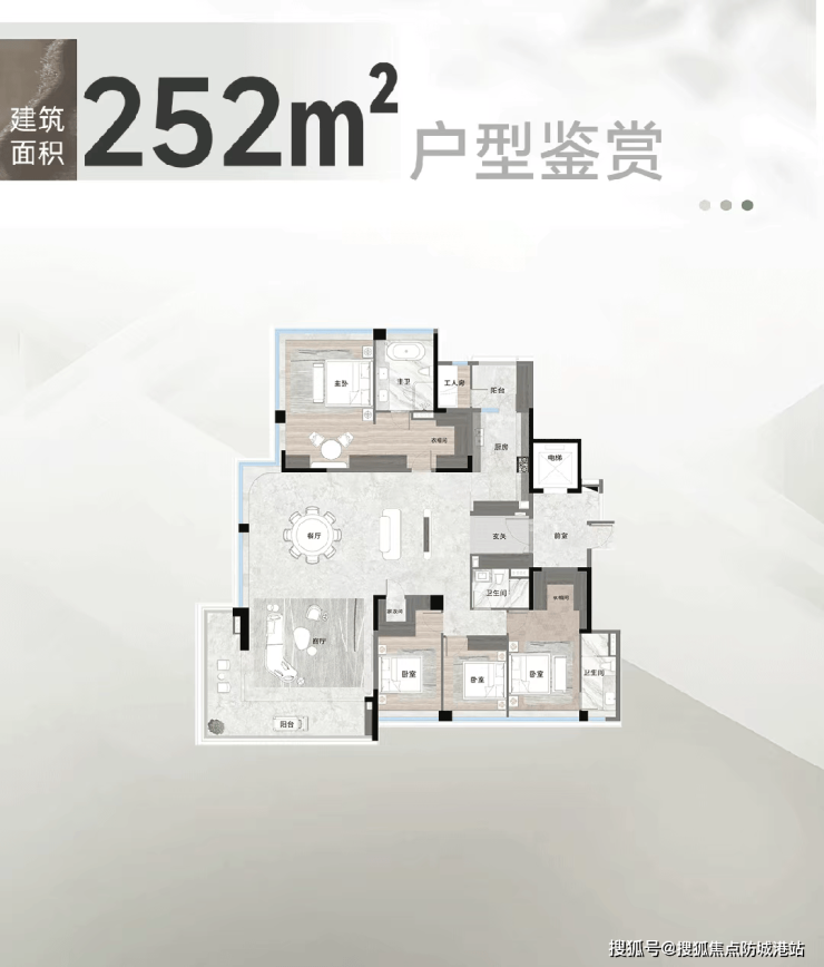 建面约252㎡头排湖景大平层,堪称湖居生活的巅峰之作。其360°景观视野可北望月亮湖、西南瞰太阳湖、南览中心园林,高层更可远眺广州城市天际线。约25米超长景观界面搭配15米L型巨幕转角阳台,宛如一座私人湖畔度假行宫。全屋四开间朝南,约19米南向面宽,配合“南北双动线”设计,实现主人与服务动线分离,兼顾私密与便捷。