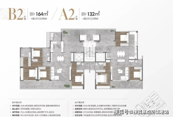 高端的建筑设计:采用两梯两户设计的大户型板楼,每个户型都配有私家庭院和大阳台,提升了居住品质。