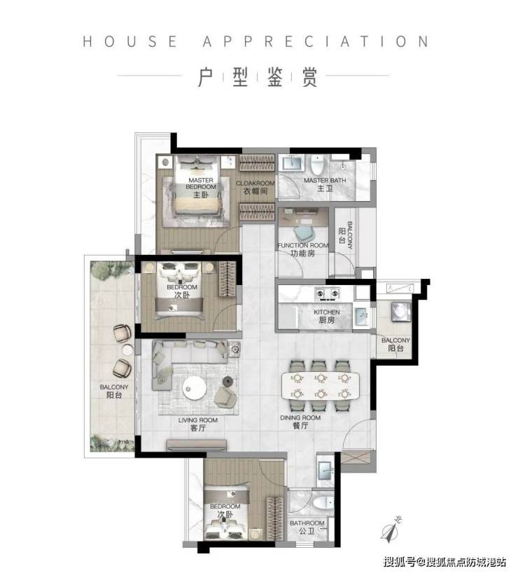 该户型在功能性与拓展性之间取得平衡,是改善型客户的高性价比之选。