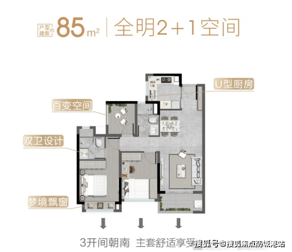 越秀星汇文瀚的产品力,在户型上体现得淋漓尽致。主力85-115㎡三至四房,全部户户朝南,采用点状式布局,确保每户采光通风无遮挡。更难得的是,部分户型使用率超96%,在限高限容政策下做到“同等面积多一房”。例如85㎡三房,U型厨房+动静分区,适合首置刚需;95㎡三房两卫,南北通透+主卧套房,私密性拉满;115㎡四房则专为二胎或三代同堂设计,LDK一体化+双阳台,空间感媲美改善盘。全系2梯5户设计,比市面上常见的2梯6户甚至8户更舒适,电梯等待时间短,邻里密度低,真正实现“低密”不只是口号。