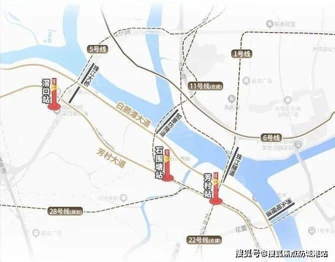 🚇地铁1号线、11号线(在建)、22号线(规划)三线交汇,步行8分钟直达白鹅潭站;