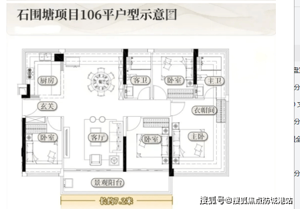 106㎡户型采用四开间朝南设计,搭配超长景观阳台,最大化吸纳阳光与景观资源。阳台可兼顾观景、晾晒与休闲功能,打造多元使用场景;四卧室设计能满足多人口家庭需求,也可灵活改造为书房、儿童房等,适配家庭不同阶段的居住需求,预计总价455万左右,适合刚改客群。