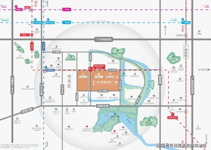 打造集高端商业、文体中心、住宅、公园、学校为一体的约50万方城芯综合体PLUS,打造顺德城市新名片。