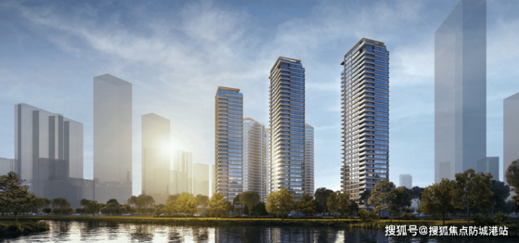 以湖为镜,定制鎏金光幕艺术立面,所有阳台均采用圆角弧线处理,90%的玻璃幕墙➕弧形铝板,270°无遮挡巨幕观景。