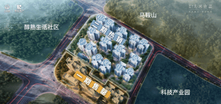 项目紧靠马鞍山,依山而建,采用稀缺小高层设计,全盘 13 - 14F,减少同栋户数,提高生活舒适性,降低电梯等待时间。二期畔山组团外拥马鞍山山景,内含中央绿轴园林,为全社区最私密组团。
