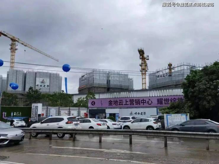 即使是台风天,依旧挡不住购房者看房的热情。金地云上营销中心前停满了车辆,看房的人更是络绎不绝。