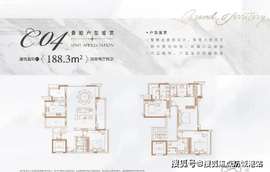 下叠:带私家庭院与地下室,庭院可打造花园、休闲区,地下室可规划为影音室、健身房,满足家庭娱乐需求;180-200㎡四房布局,主卧套间带独立卫浴与步入式衣帽间,适配注重庭院生活的家庭。