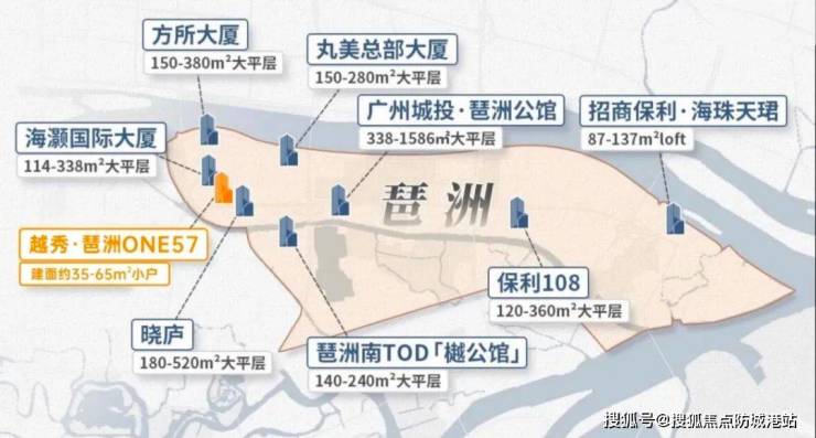 琶洲ONE57位于广州海珠区琶洲CBD核心区域,项目总户数约494户,是琶洲CBD少有的小面积轻资产住宅项目。项目周边汇聚总部办公、金融创新、人工智能及贸易功能,形成广州CBD“黄金三角”核心。靠近珠江新城和金融城,距市中心仅10公里,城市配套成熟,商业、休闲及金融资源丰富。项目定位轻资产住宅,建面35至65平方米,总价百万左右,满足高收入群体和投资客的置业需求,是琶洲CBD核心区极具潜力的住宅选择。