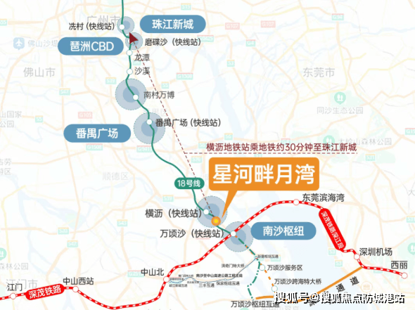 项目距离地铁18号线横沥站仅一步之遥,该线路被誉为“湾区最快地铁”,时速高达160公里,4站即可直达珠江新城冼村站,轻松链接天河CBD。南延段更将贯通中山、珠海,真正实现湾区“半小时生活圈”。