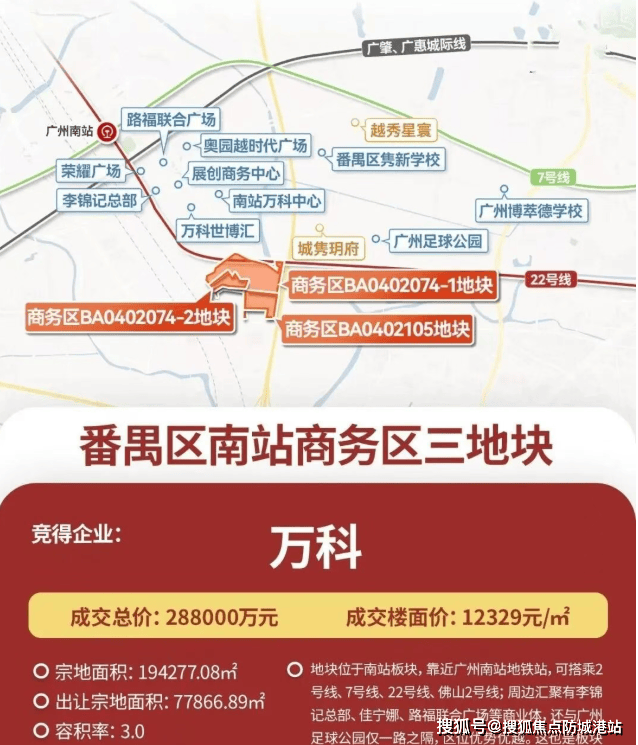 2024年12月17日,广州南站商务区三块核心宅地公开出让,万科凭借对南站板块的深耕优势与雄厚的企业实力,成功摘得三宗地块,折算楼面价约1.2万+/平。这是万科时隔四年再次在广州拿地,更是其深耕南站、布局南站3.0时代的重要举措。据万科官方透露,此次拿地并非单纯的住宅开发,而是基于南站“站城一体、业态融合”的发展定位,打造集住宅、教育、商业、休闲、生态于一体的大型TOD综合体,打破南站枢纽、居住板块与周边文体资源的割裂格局,让南站真正实现“工作、生活、休闲”的无缝衔接。