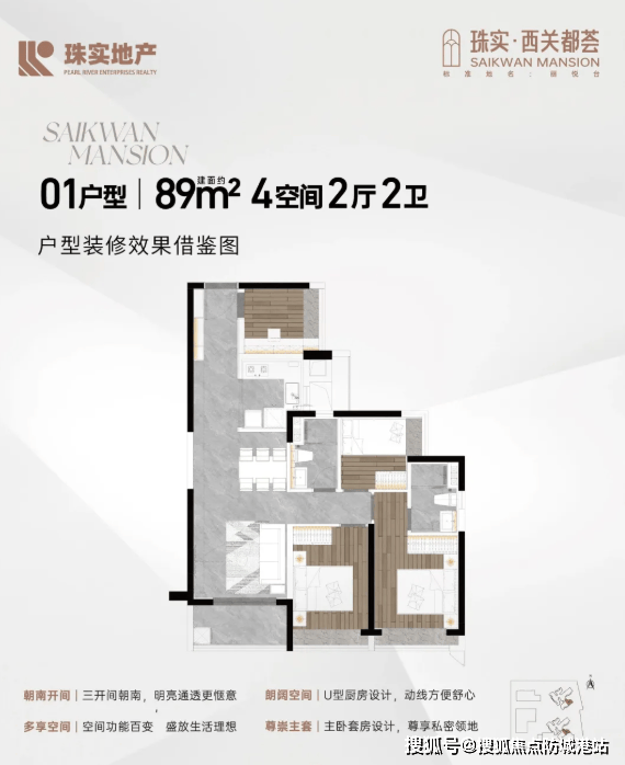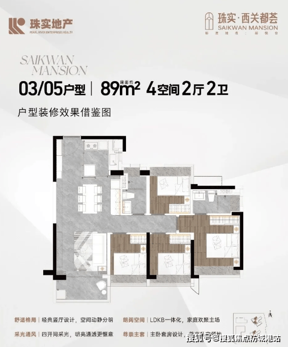 对于改善型家庭而言,空间实用性远胜于虚高面积。珠委·西关都荟以“高使用率”为核心设计理念,89㎡户型竟能做到四房两厅两卫,真正实现“小面积大格局”。目前89㎡西北向单位总价仅467万起,东南向优质朝向也控制在556万以内,让总价500万左右的家庭也能轻松上车四房,告别局促,拥抱多孩或三代同堂的理想生活。
