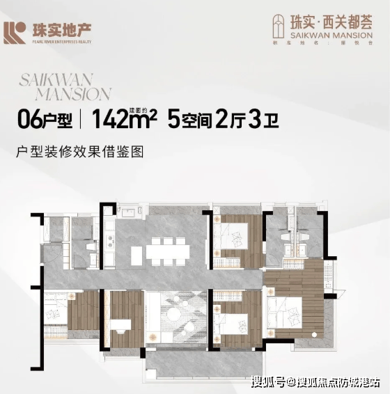 此外,项目还提供121㎡、142㎡多元户型选择,满足不同阶段家庭需求。其中142㎡南北对流五房双主套户型,总价区间857–981万,三主卧设计兼顾私密与尊崇,堪称西关改善天花板。