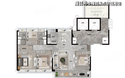 楼层方面为9-32层,有3梯3户和2梯2户,相当于专梯专户,主打板式住宅和低密宜居。