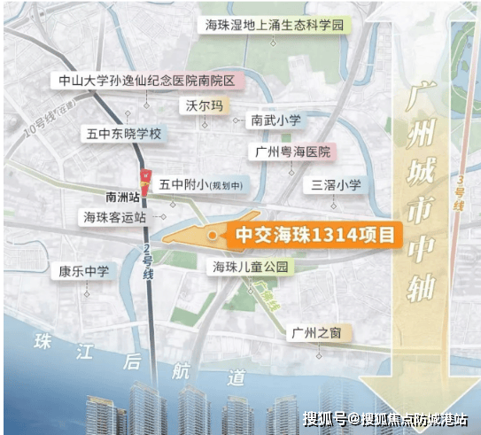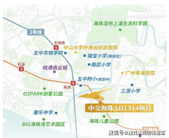 地理位置:项目紧邻2号线和广佛线交汇的南洲站,直线距离约500米,方便居民快速抵达广州市区及周边城市。