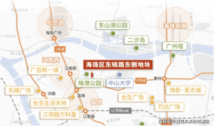 项目位于海珠老城腹地的东晓路板块,地处晓港生活圈内,地理优势极为明显。项目距地铁晓港站直线约六百米,步行十分钟内即可到达,快速连接2号线与8号线两条城市骨干轨道,可通达琶洲、客村、天河北等重要商圈,日常通勤效率极高。此外,周边路网成熟,自驾出行便捷,快速通达珠江新城、越秀东山等核心板块。对于居住人群而言,这种立体交通网络提供了极高的通达性,也为未来房产升值带来潜在支持。在广州持续推进中心城区更新的背景下,该区域未来或将迎来更密集的公共交通提升计划,为项目带来持续的地段红利。
