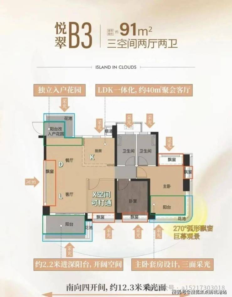 建面约82-91㎡三房,总价约370万-420万起。