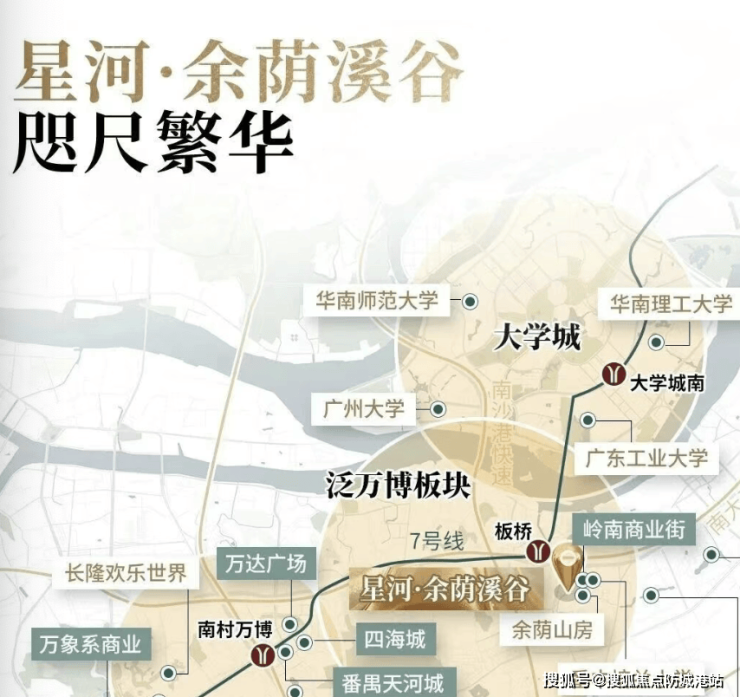 同时,项目并未远离现代都市的繁华与便利。它精准地落位于广州南部黄金发展走廊之上,恰好处在万博CBD(已扩容为“广州南CBD”,约7.2平方公里)与广州大学城(国际创新城)两大城市级价值高地的中轴线上。这种“左手百年文脉,右手当代繁华”的独特占位,使其既能享受万博商圈天河城、万达、万象天地、K11等世界级商业的璀璨,又能便捷链接大学城的顶尖学府与科研智核,更能随时退守余荫山房的静谧园林与周边六大公园的环抱之中。这种“出则繁华、入则静谧、文脉在侧”的复合型土地基因,在广州乃至整个大湾区,都堪称绝版。