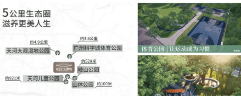 三面环山的大灵山、长岗山、横山、简山环绕着联投·文津府,人均公共绿地面积达13.4平方米,营造出一个天然的森林氧吧。外揽“1+4公园”,包括山体公园、天河区儿童公园、岐山公园、天河大观湿地公园和广州科学城体育公园,为居民提供了丰富的户外活动空间。