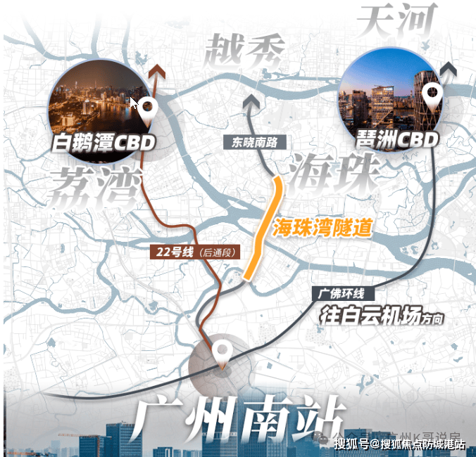 高铁城际网络: 依托广州南站这一全国客运量第一的高铁站,可实现1小时内通达湾区主要城市(深圳、香港、珠海、佛山等),真正实现“湾区生活,广州工作”。