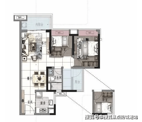 南向约99㎡3+1房2卫:户型升级优化,拥有灵动入户空间,可根据需求灵活改造;南向约6米阳台,尽揽自然景观;主卧套房设计,保障业主的私密生活。